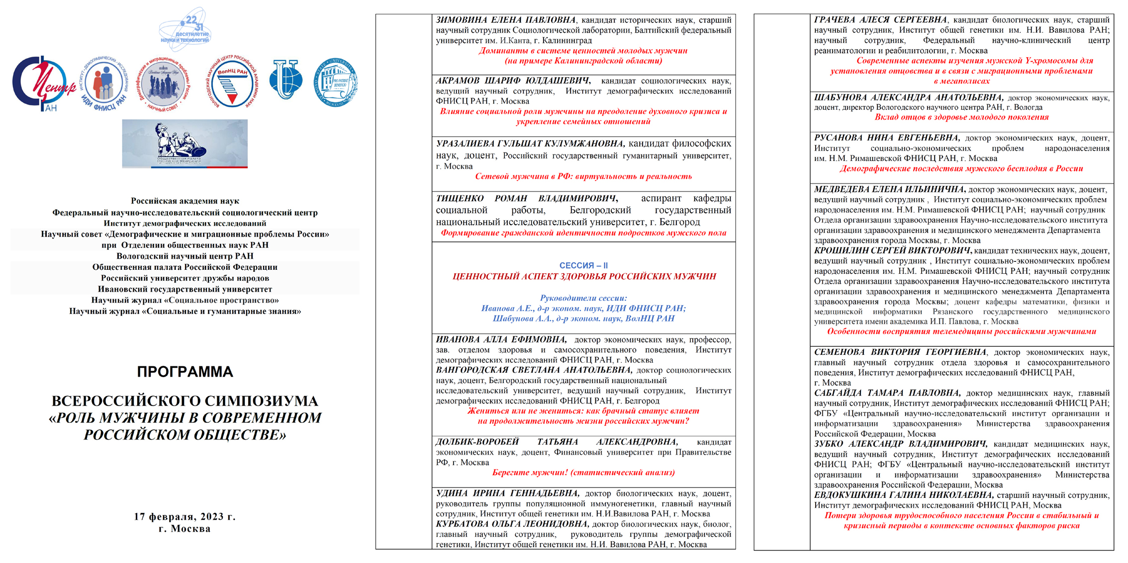 - Формирование и воспроизводство демографического потенциала (руководитель секции: В.Н. Архангельский, соруководитель: Н.Е. Русанова);